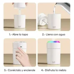 Disfruta de un ambiente fresco y relajante con nuestro humidificador portátil. Su diseño moderno y elegante, complementado con luces LED RGB, crea una atmósfera acogedora, ideal para cualquier rincón de tu hogar u oficina.