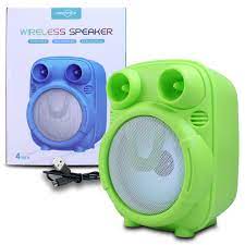 - Su diseño de 4 pulgadas incluye luz LED multicolor que se sincroniza con la música.