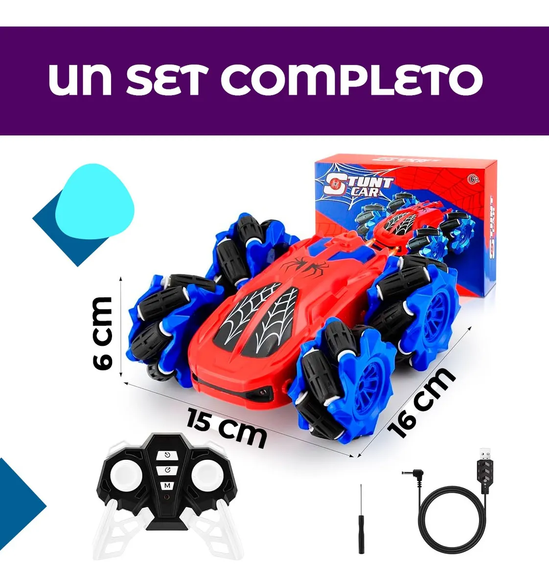 Control remoto resistente, ideal para niños de 6 a 12 años.